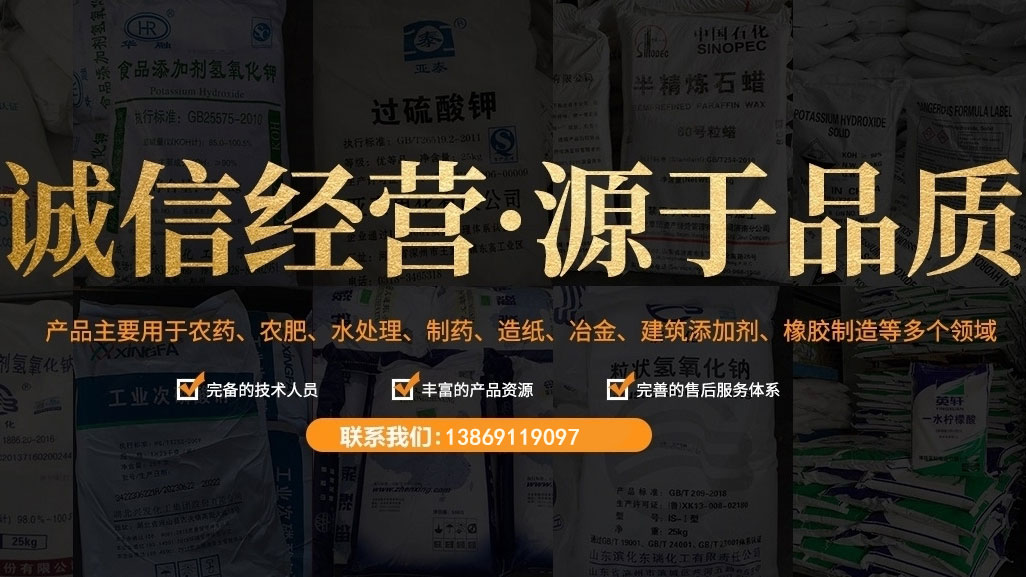 我公司是一家集、研发、贸易为一体的综合性化工公司。主要涵盖无机化工产品、化工产品、实验仪器等几大系列。主营产品为氢氧化钾、过硫酸铵、过硫酸钠、顺酐、二氯甲烷、水泥防水剂、色谱仪器毛细管等六十多个品种。产品主要用于农药、农肥、水处理、制药、造纸、冶金、建筑添加剂、橡胶制造等多个领域。 岁月不居,时节如流。公司于2006年成立,如今已十几个年头了。一路走来我们一步一个脚印,兢兢业业,诚信经营,如今公司已发展成为年销售额近陆仟万元...